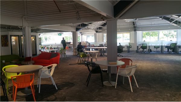 המקום מאוד שקט ופרוס בצורה של אופן ספייס רחב וסביבו אשכולות של משרדים, כאשר כל אשכול צבוע בצבע אחר. במתחם יש פינות ישיבה מפוזרות עם ספות, ועל הקירות מגוון תמונות מגלריה שנמצאת בעמק חפר. החלונות שבמתחם פונים למה שמסביר את שם המקום – המון ירוק, מדשאות ועצים.